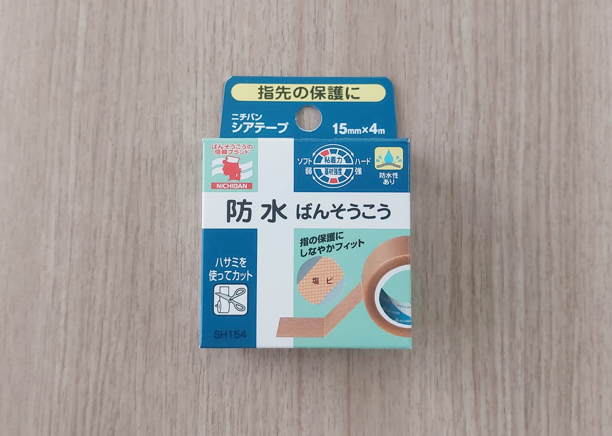 https://hibari-seisou.tokyo/dead-nail/こちらのサイトを参考に、現在はニチバンの防水ばんそうこう『シアテープ15㎜×4m』を使っています↓